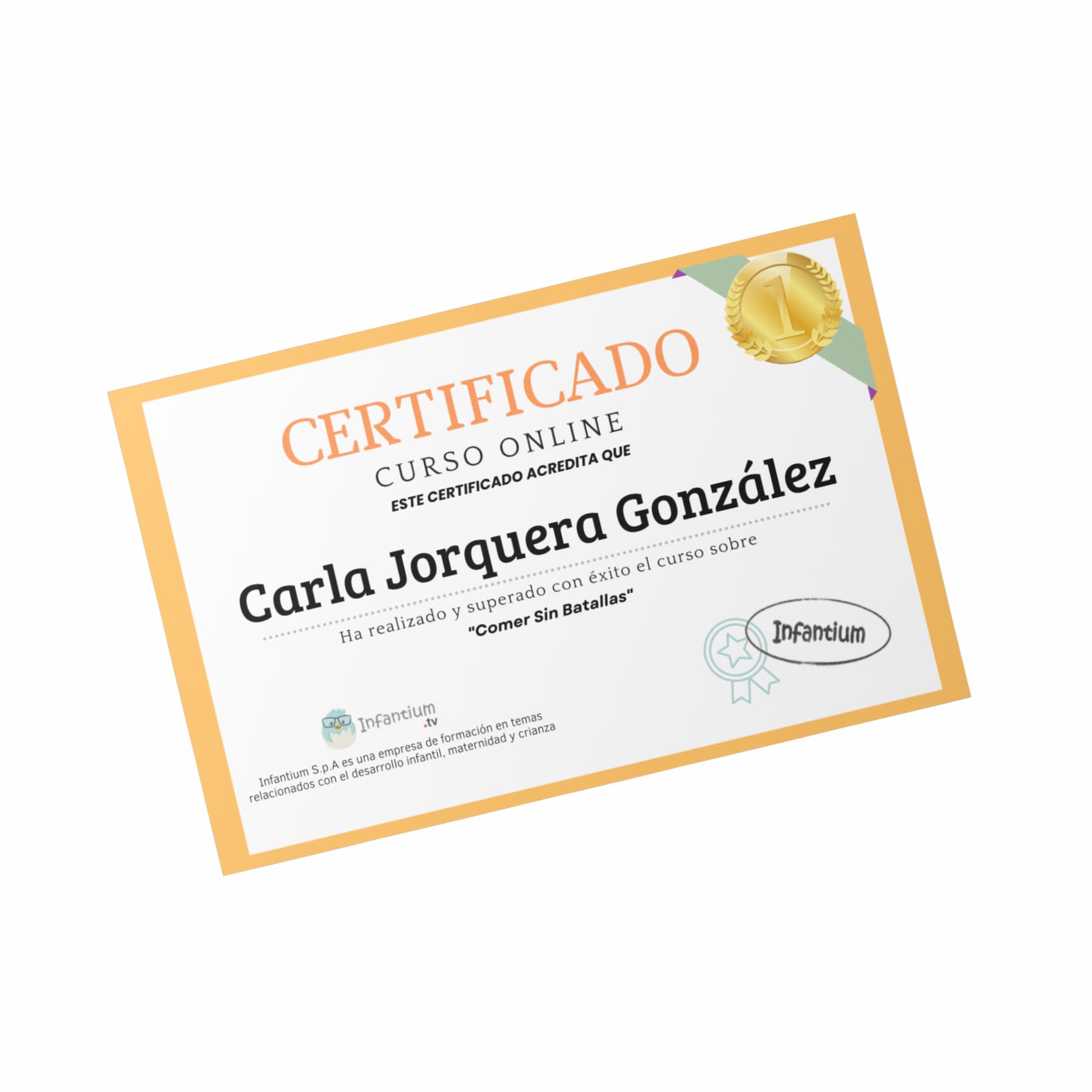El curso te ofrece acceso de por vida, lo que significa que podrás regresar a los materiales siempre que lo necesites. Al finalizar el curso recibirás un certificado digital que acredita tus conocimientos. Un reconocimiento a tu compromiso con la crianza y la alimentación consciente de tu hijo.